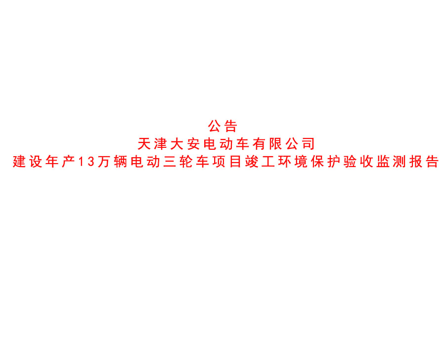 公司動態(tài) 天津大安電動車有限公司建設(shè)年產(chǎn)13萬輛電動三輪車項目竣工環(huán)境保護驗收監(jiān)測報告